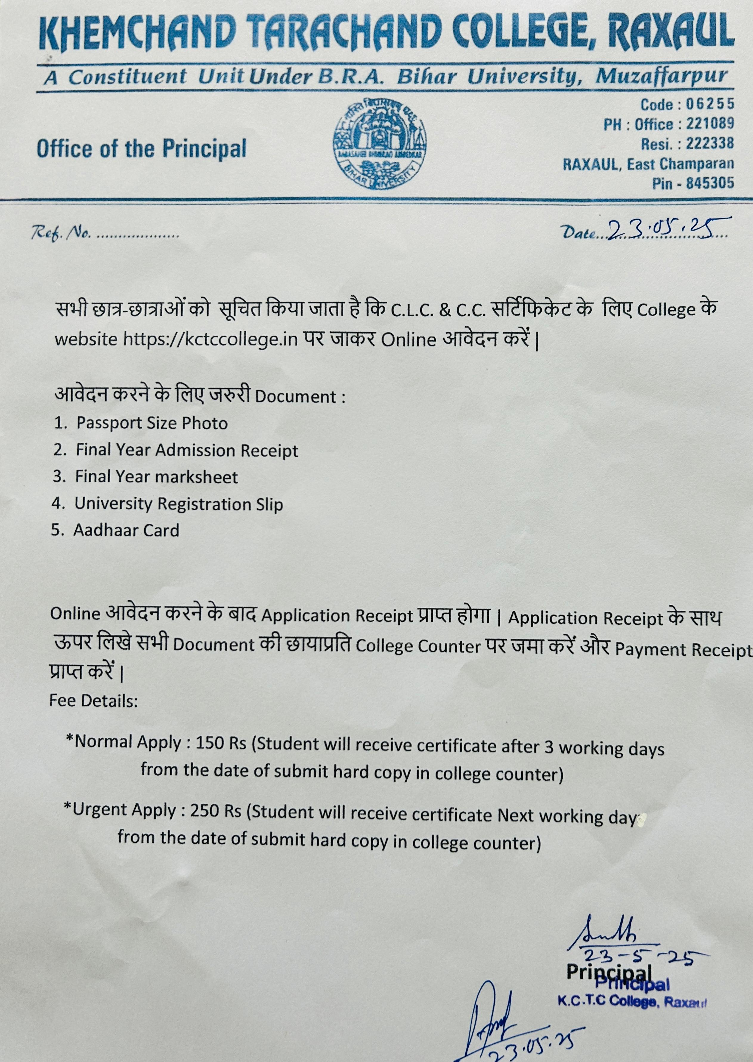 - • Fees once paid are non-refundable under any circumstances or clauses of K.C.T.C. College, Raxaul.
